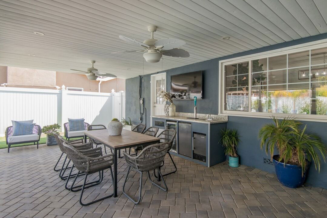 Fully remodeled 3 bedroom, 2 baths with a detached 1 bedroom 1 bath guest house perfect for an office. Spacious living room with decorative fireplace with easy flow indoor outdoor concept. The outdoor living space with new built in BBQ, Stove, Beer Draft and 3 Fridges ideal for entertaining. The newly built pool and spa complete with sleek glass safety. Fully owned solar panels, with newer tankless water heater. Easy access to shopping and restaurants. Internet, Gardner and Poolman paid my owner.